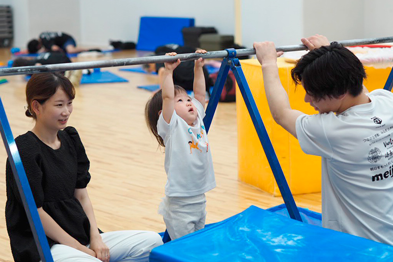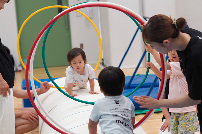 未就園児を対象に、準備運動をみんなでした後は、器具を使い感覚に訴えかける様々な体操遊びを行います。 1回のクラスで定員は20名程度を予定しています。