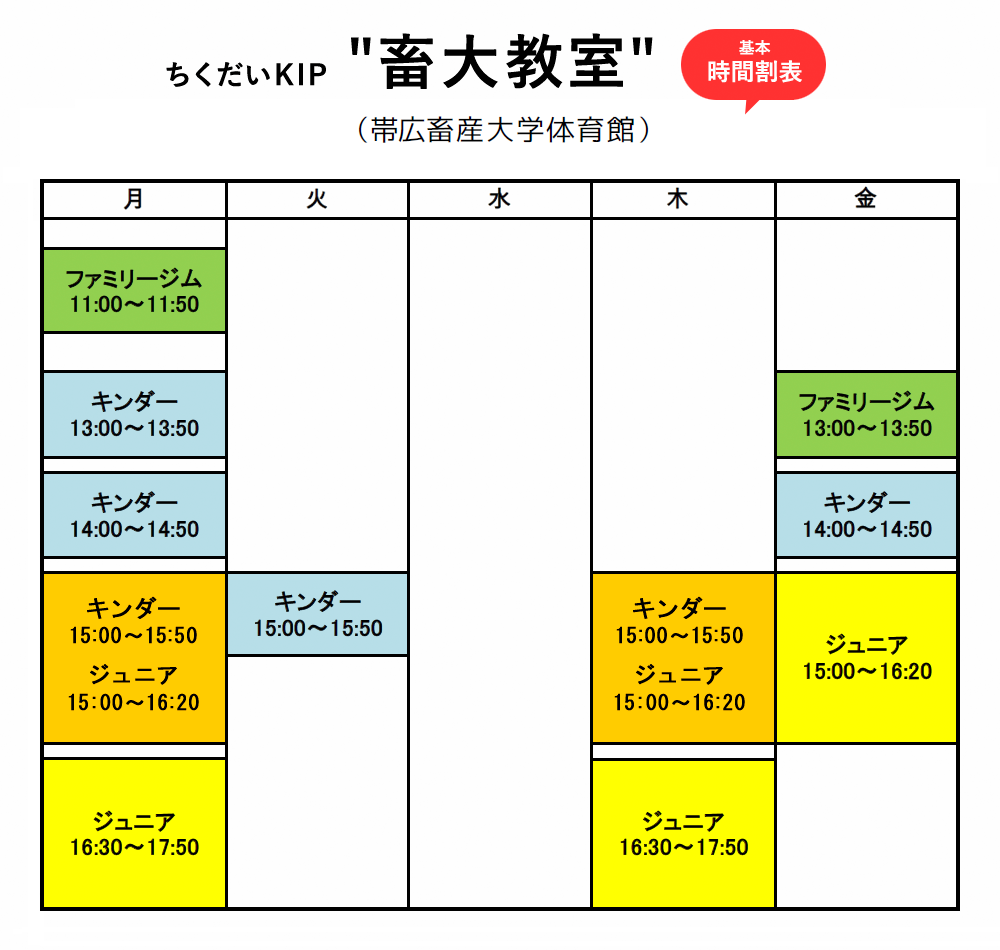 #スケジュール #畜大教室 #よつ葉アリーナ教室 #時間割