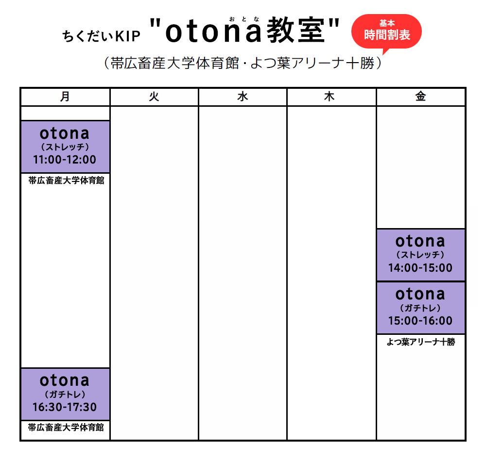 #体験 #スケジュール #畜大教室 #よつ葉アリーナ教室 #鹿追教室 #otona(おとな)教室