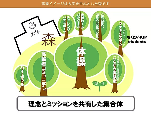 ちくだいKIPの未来には夢が広がっています。理念に基づいた活動であれば、なんでもトライしていく覚悟です。例えば、医療機関との連携によるお年寄りの運動教室、英語教育とスポーツ教室の融合、あとは・・・そうだ、皆さんの声で作っちゃおう!新規事業募集のテーマは「才能をシェアしよう~誰でも先生に」……